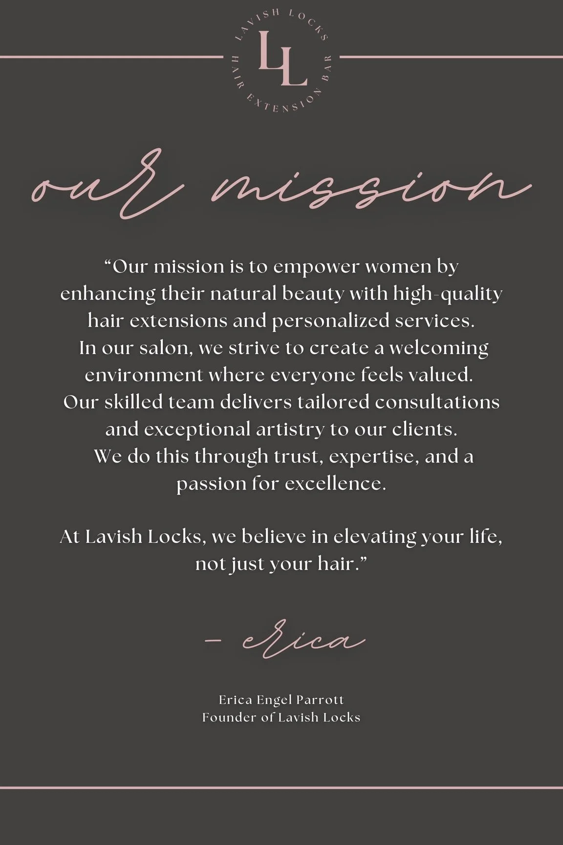 “Our Mission is to empower woman by enhancing their natural beauty with high-quality hair extensions and personalized services”…